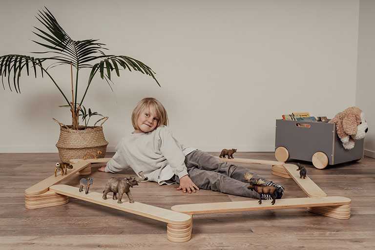 Disponible en dos tamaños, el conjunto más pequeño es ideal para niños y adultos que prefieren algo compacto, mientras que el conjunto más grande supone todo un reto. El rodillo de corcho se puede utilizar como un rodillo de espuma para estiramientos, y la tabla de equilibrio también sirve como escritorio para la cama o el sofá.