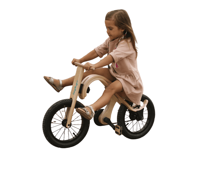 Grâce à son cadre en bois léger (seulement 4,9 kg), sa géométrie intuitive et ses détails pensés pour la sécurité, Bicycle Go rend l’apprentissage du vélo naturel dès les premiers coups de pédale.
