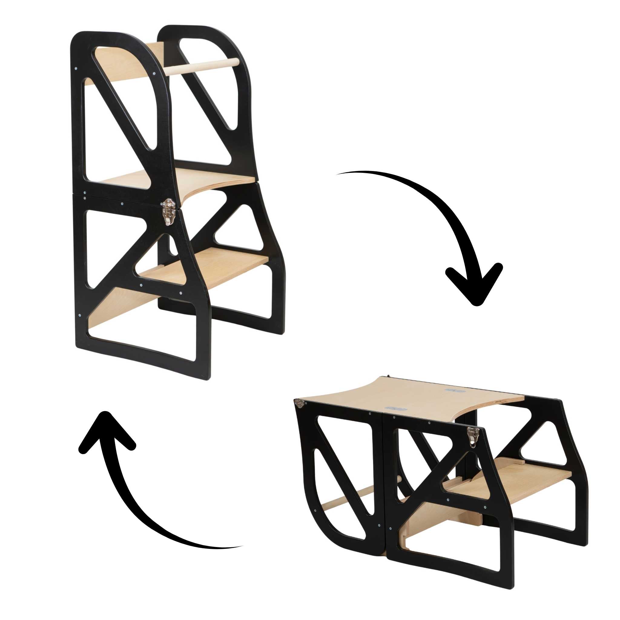 The Transformable kitchen tower Securestep is a multifunctional learning tower designed as an all-in-one solution for everyday use. From standing activities and table play to feeding and creative moments with optional add-ons, it adapts easily as your child grows – replacing the need for multiple separate pieces of furniture.
